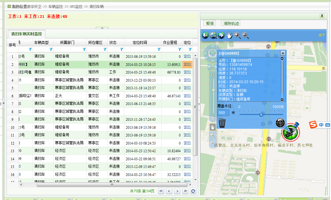主要功能有:地理信息管理、部件设施管理、环卫车辆监管、视频监控、部件在线更新、统计分析、基础信息管理。